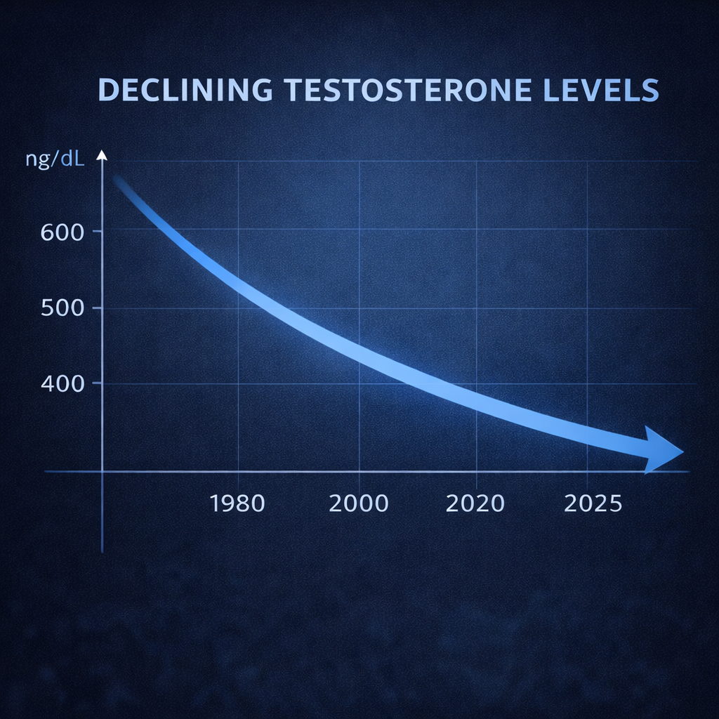 This isn't conspiracy. It's chemistry. These environmental factors have driven a 1% annual decline in male testosterone since the 1980s. A 30-year-old man today has 40-50% less testosterone than his grandfather did at the same age. You're not getting older. You're getting poisoned. And if you don't actively defend your hormones against this onslaught, you'll become a casualty of a world that's chemically castrating men one plastic bottle at a time.
